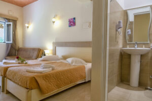 The rooms are equipped with a small refrigerator, free internet, TV, air conditioning, and hairdryer. Double rooms (12 sq m) are available with either a double bed or two separate beds (no extra bed available). Triple rooms (21 sq m) include a double bed and a single bed, while quadruple rooms (21 sq m) feature a double bed and a sofa bed.