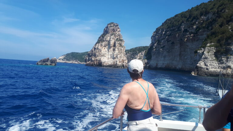 We continue sailing south along the western coast of the island of Paxos, enjoying the spectacular rocky coastline. The ship enters breathtaking sea caves, whose clear blue waters will leave you speechless. The marine area of the Blue Caves is the natural habitat of the Mediterranean monk seal (monachus monachus).