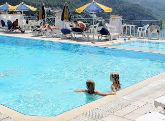 The property features a swimming pool, sun terrace with Ionian Sea views, and a snack bar. Free Wi-Fi is available in public areas.