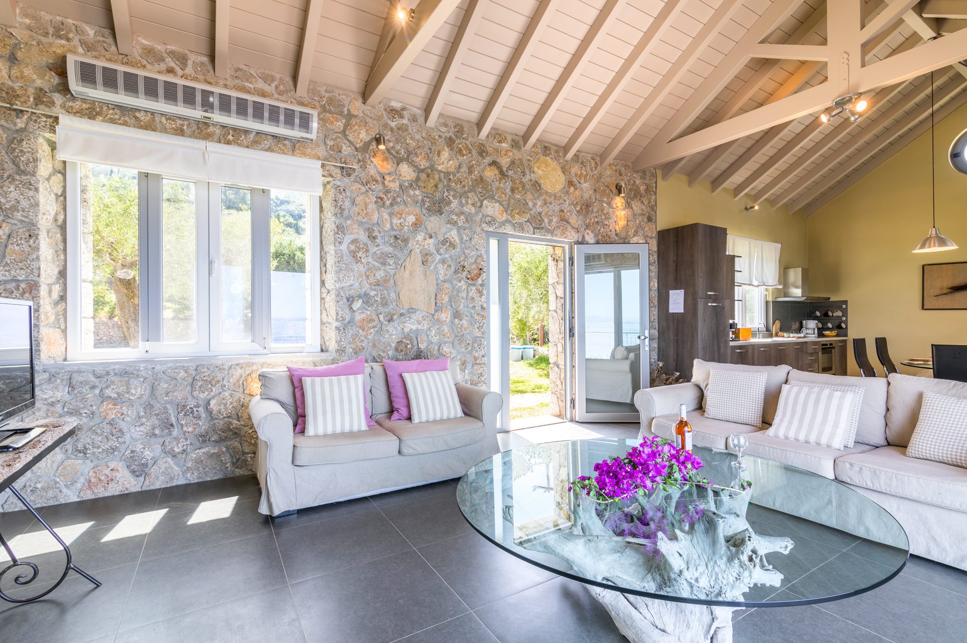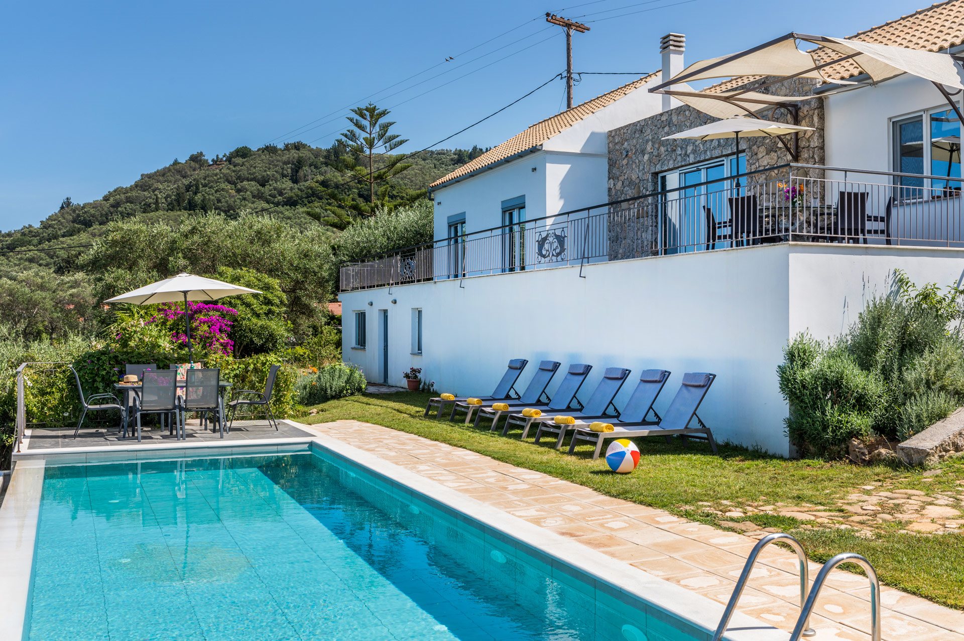 Located in Boukari, between Boukari and Petriti in the southeastern part of the island, this villa—together with Pelagia and Alkyoni—belongs to the same owner. The properties are situated next to each other, making them especially suitable for larger groups traveling together. The villa features a swimming pool with sea view and a tennis court, offering both relaxation and activity.