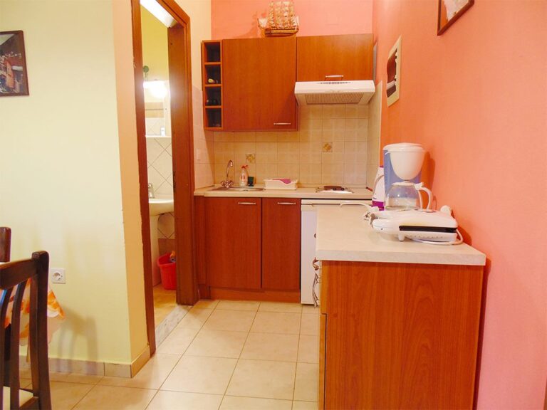 Western part of the island. About 15 km from Corfu Airport, 15 km from Corfu Town, 4 km from the mountain village of Agios Matheos, and approximately 50 m from Prasoudi sandy beach (sun loungers and umbrellas available for an additional fee; no beach towels). A traditional tavern, Avra, is 30 m away. The nearest shops are in Agios Matheos (4 km) and Mesonghi/Moraitika (6 km).