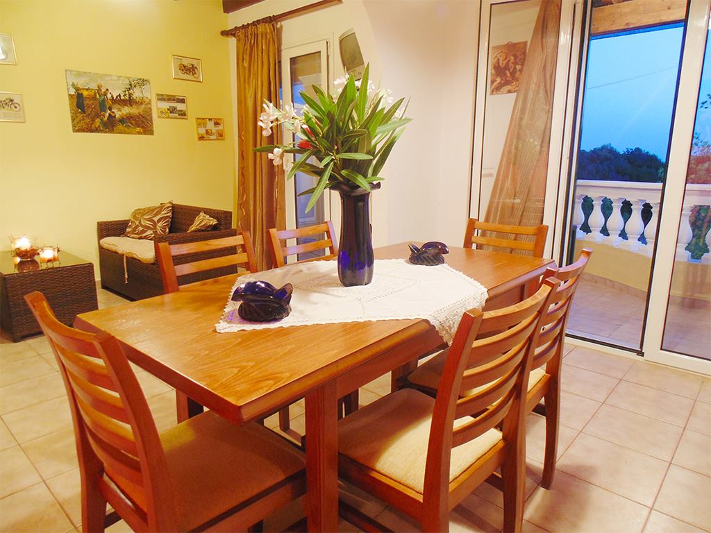 Western part of the island. About 15 km from Corfu Airport, 15 km from Corfu Town, 4 km from the mountain village of Agios Matheos, and approximately 50 m from Prasoudi sandy beach (sun loungers and umbrellas available for an additional fee; no beach towels). A traditional tavern, Avra, is 30 m away. The nearest shops are in Agios Matheos (4 km) and Mesonghi/Moraitika (6 km).