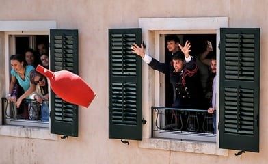 11:00 AM: The mood shifts instantly! As the bells ring out, massive red clay jugs (Botides) filled with water are hurled from balconies, crashing into the streets below.