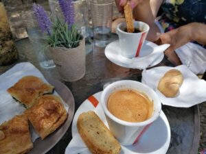 We stop at a traditional Greek bakery, taste fresh pastries and drink real Greek coffee.