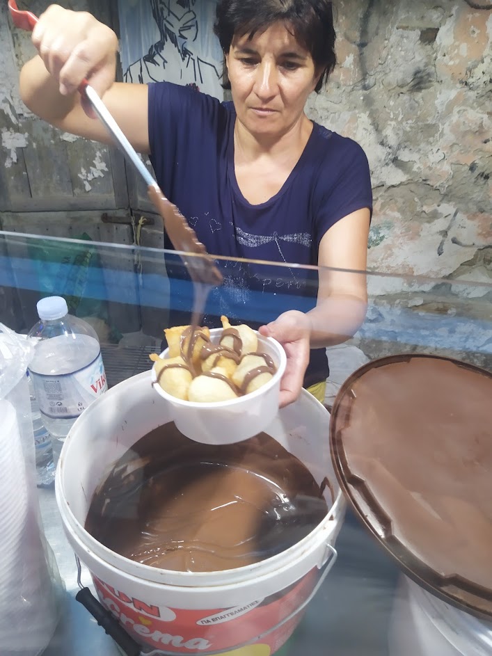 This is a Greek street food dessert. Not just any dessert – it’s also a part of Greek history.