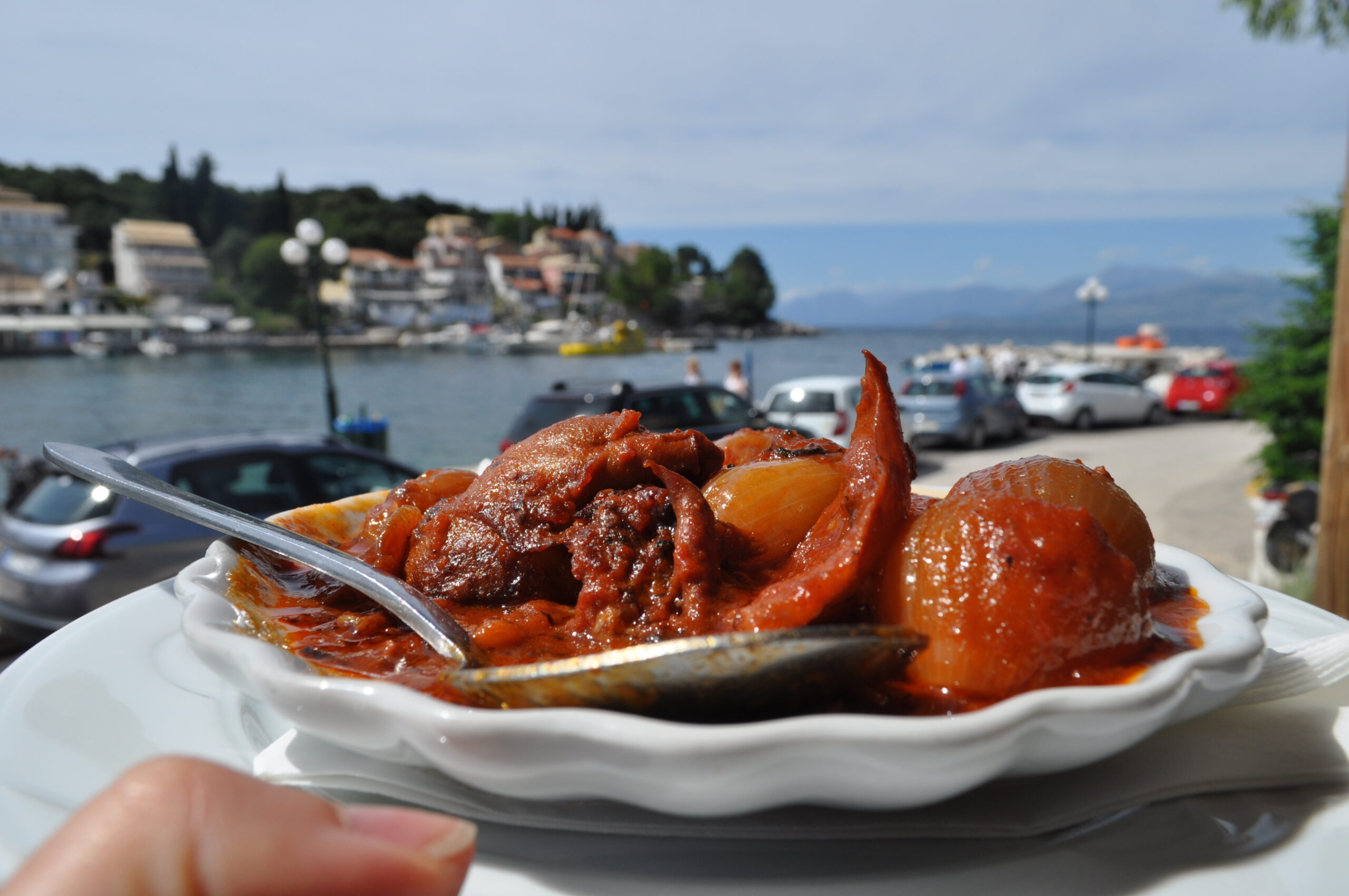 Corfu’s cuisine is a rich blend of Mediterranean tradition and Venetian influence—spicier, more aromatic, and often more indulgent than mainland Greek food.