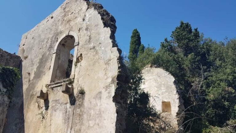Around 40 years ago, a severe storm caused the roof to collapse, and the monks eventually left. Although restoration plans were considered, they were postponed during the financial crisis. Today, the site still holds spiritual significance: on August 15th, the Feast of the Assumption, locals gather here to light candles in a nearby chapel. It is believed to be a place of healing, where prayers are offered for the sick. The small chapel itself was built by a family in gratitude after their daughter recovered from a serious illness.