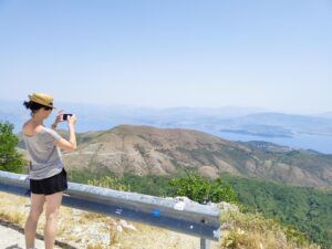 Start your adventure by ascending Mount Pantokrator, the highest peak on the island at 906 meters (2,972 feet). As you drive or hike up the winding roads, enjoy breathtaking views of lush landscapes, traditional villages, and the shimmering Ionian Sea. At the summit, visit the Pantokrator Monastery, a serene stone structure dating back to the 14th century. The panoramic views from the top stretch across Corfu, the Albanian coast, and even as far as Italy on a clear day. It’s a perfect spot for nature enthusiasts and photographers alike.