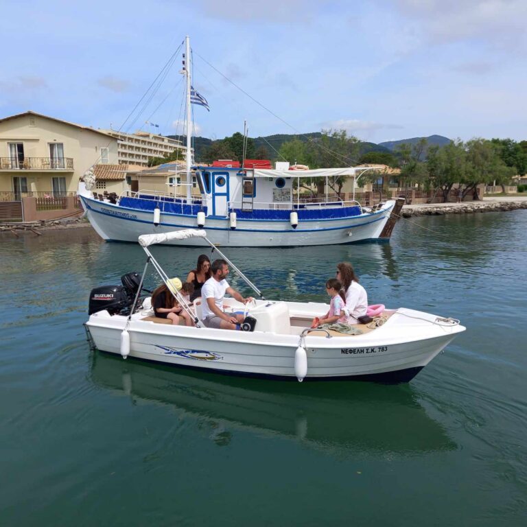 4 hours – €120 + fuel / 7 hours – €170 + fuel All boats include: 30hp engine, Auxiliary engine, Sunshade (tent), Cool box | Boat “NEFELI” – up to...
