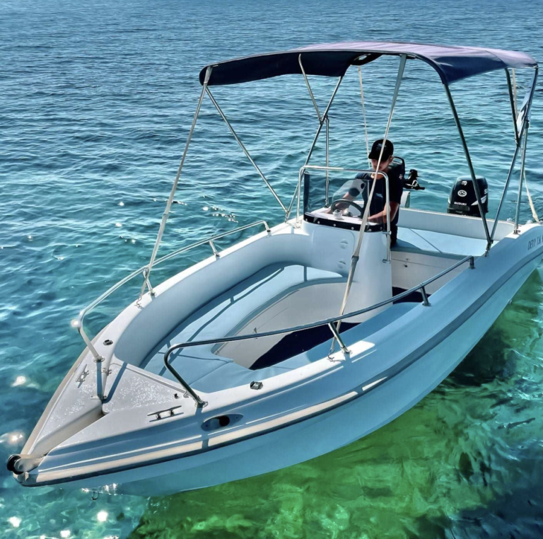 4 hours – €120 + fuel / 7 hours – €170 + fuel All boats include: 30hp engine, Auxiliary engine, Sunshade (tent), Cool box | Boat “THETIS” – up to...